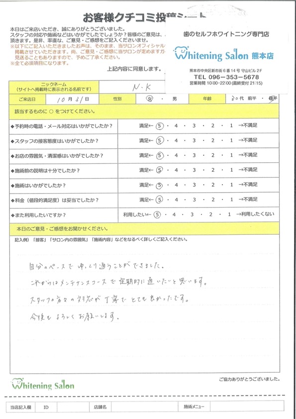 も早く、丁寧で通いやすかったです。通う度に白くなっていく