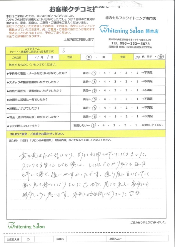 歯の黄ばみが気になり、当店を利用させていただきました。